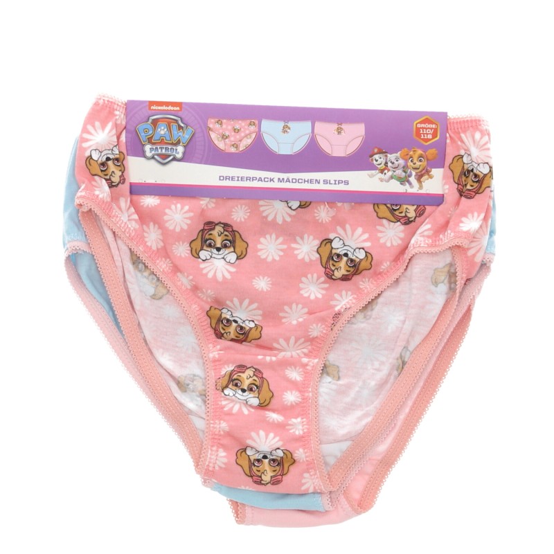 2 чифта розови и 1 светлосин - общо 3 броя детски бикини за момиченца, които харесват сладката Скай от безкрайната кучешка поредица Пес Патрул.