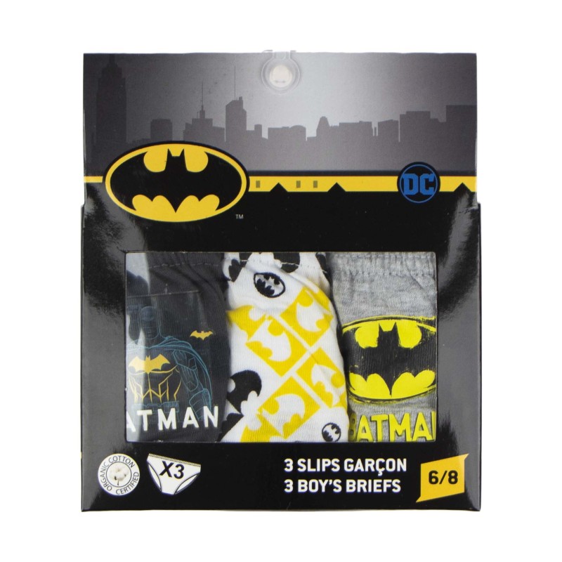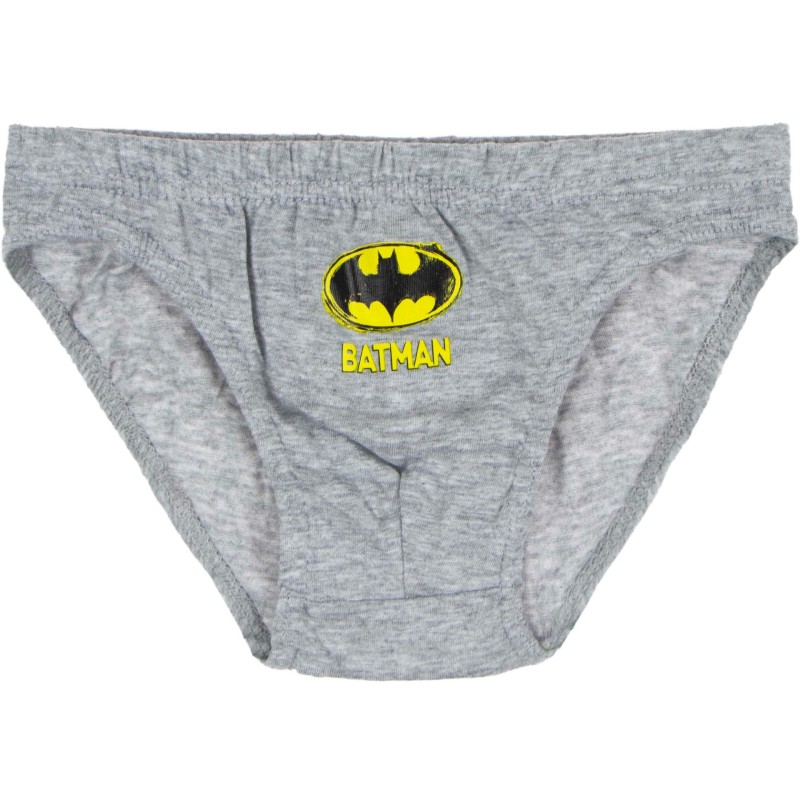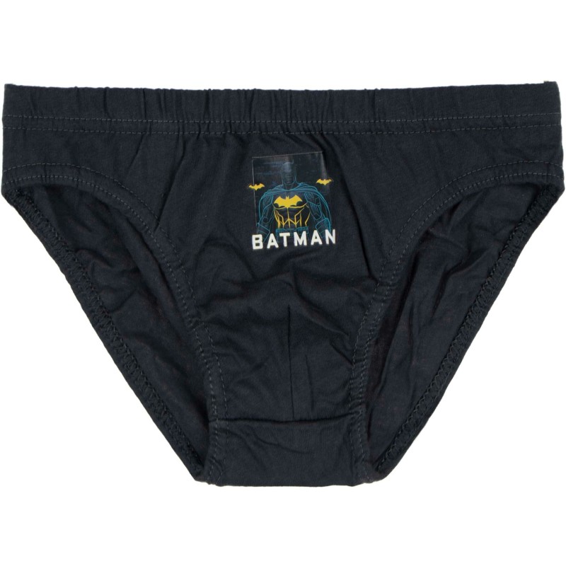 Комплект от 3 бр. памучни слипове за момче с картинки от любимия филм за Батман. Слиповете са с удобна кройка, от мек памучен плат, идеално допълнение към гардероба от дрехи с герои на момчето ти.
