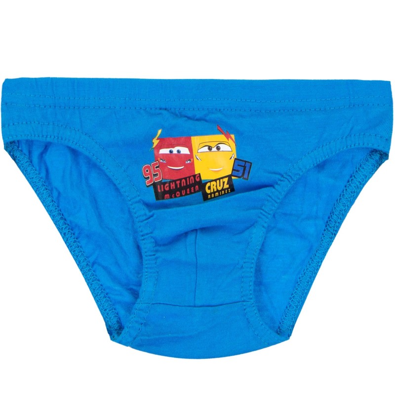 Филмовата поредица Колите на Дисни с Макуин Светкавицата е любима на повечето малки и по-големи момчета по света. Това обуславя големия интерес към детските дрехи с герои от Колите и бельото не прави изключение. Този комплект от 3 броя детски слипове за момчета от 2 до 8 години е чудесно допълнение към богатия на дрехи с Макуин момчешки гардероб. Слиповете са от лека памучна материя, удобни и практични.