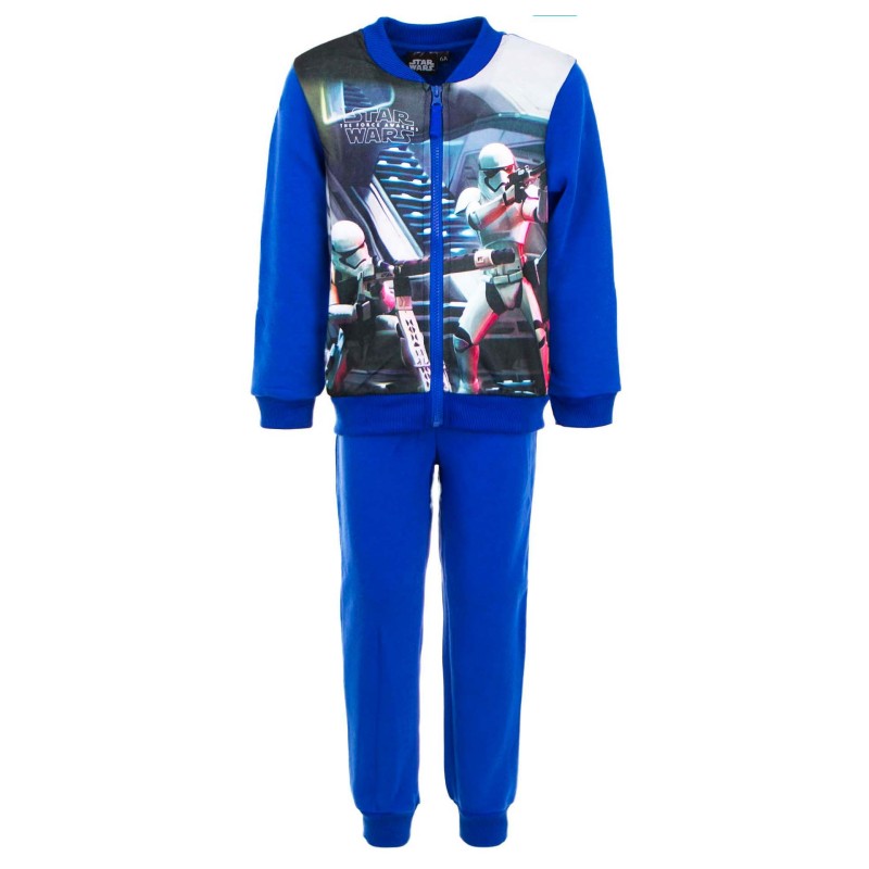 Едноцветен син анцуг за момче с кадър от Междузвездни войни. Анцунгът се състои от две части - долнище с ластик в долната част и горнище с цип. Може да комплектувате с Комплект от 2 чифта чорапи за момче Star Wars Оригинален лицензиран продукт Star Wars.