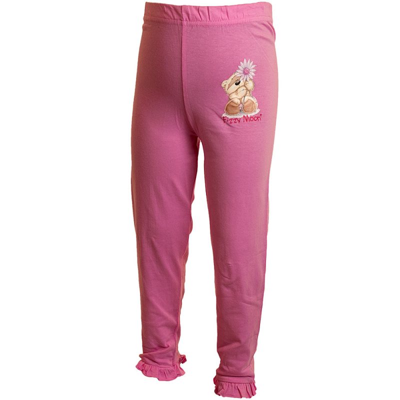 Детски клин за момиче в приятен розов цвят, подходящ за всякакви съчетания. Клинът е лек и удобен, с къдрички на крачолите и сладка щампа на мече.