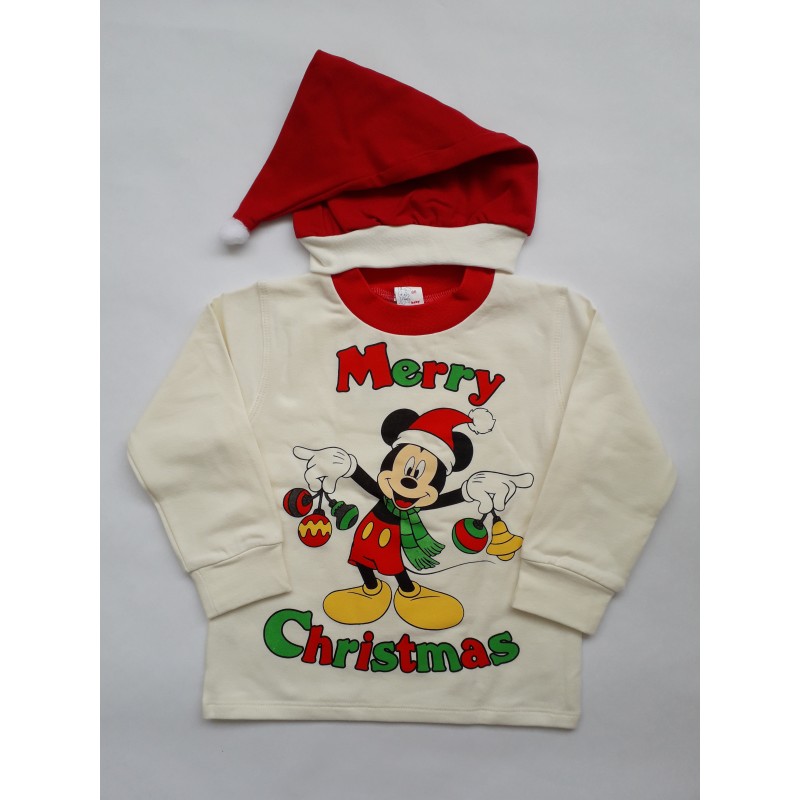 Симпатичен комплект от блузка с дълъг ръкав с Мини Маус и коледна шапка.