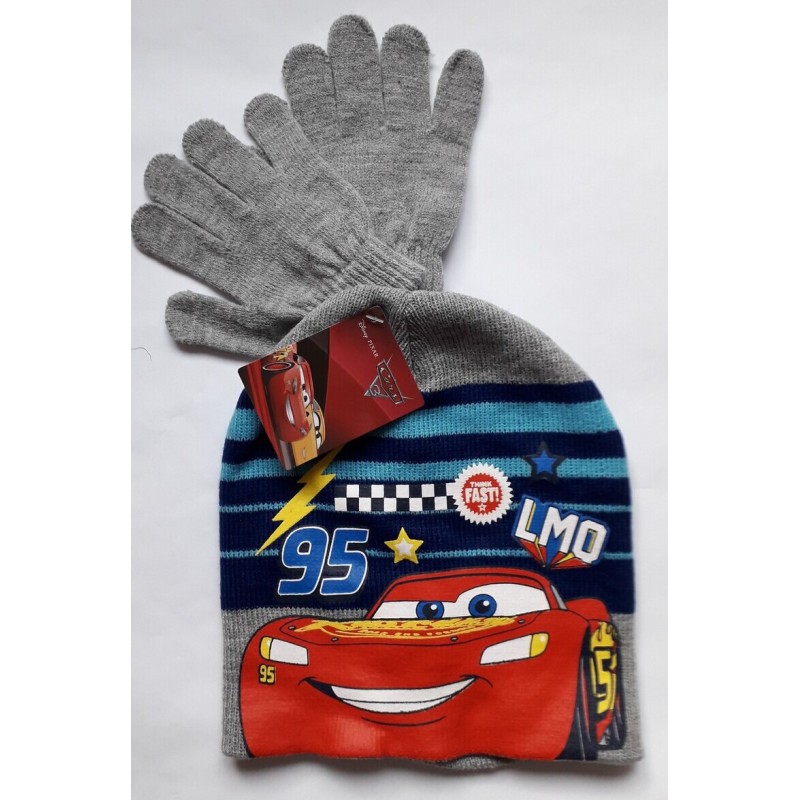 Топъл комплект за момчета от шапка и ръкавици в сиво и разбира се -  със Светкавицата Макуин, любимият герой от филма на Дисни "Колите". Оригинален лицензиран продукт Disney.
