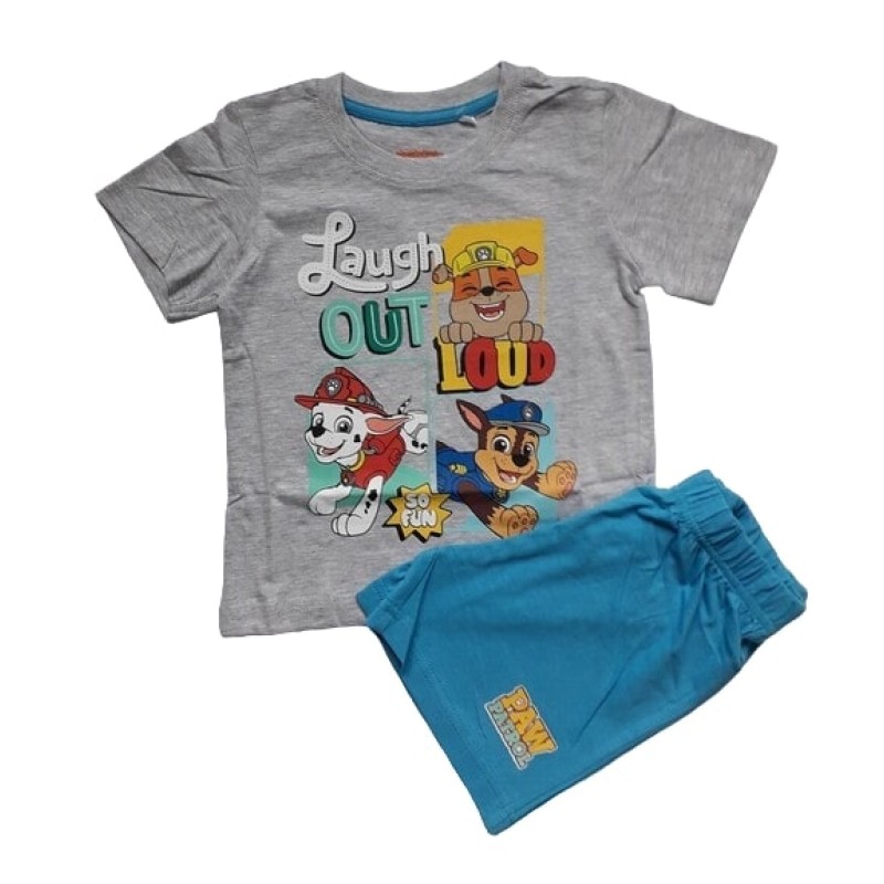 Очарователните усмивки на Чейс, Маршал и Рабъл греят от блузата на тази лятна пижама за момче Пес Па..