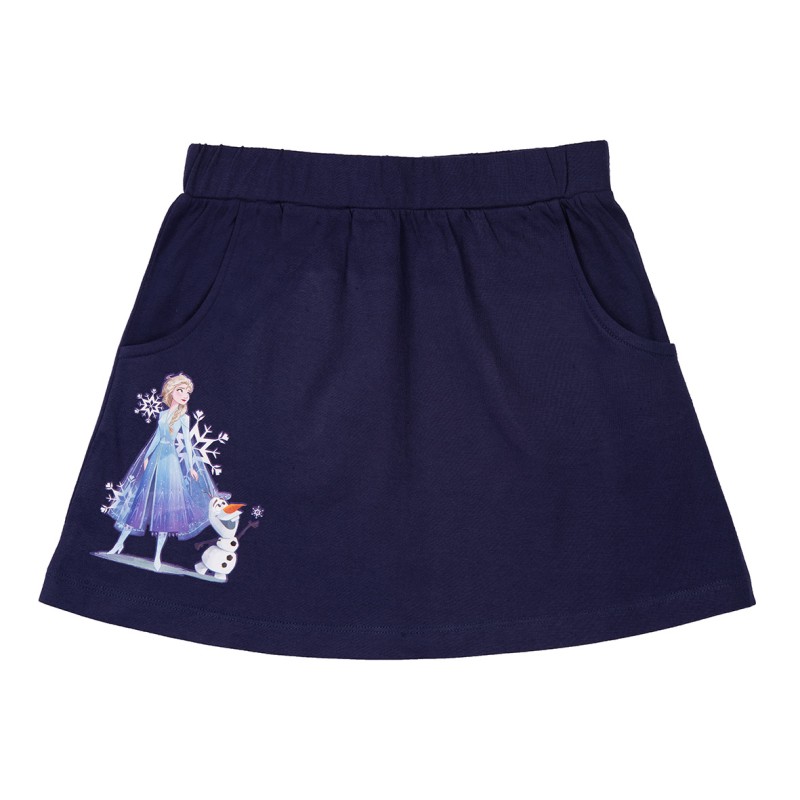 Семпла леко разкроена пола за изискани млади дами с любимата Елза в компанията на Олаф от Замръзналото кралство Frozen. Полата е памучна, подходяща както за ежедневието, така и за по-специални случаи и би била чудесно допълнение към гардероба от Детски дрехи Замръзналото кралство Frozen на всяко момиче.