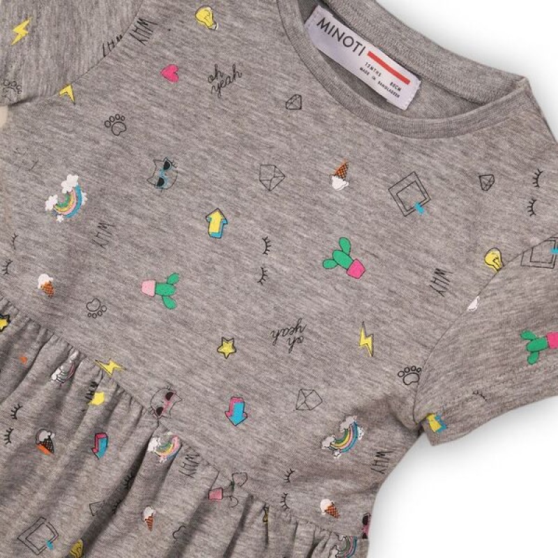 Колекция Пролет-Лято 2018. Сладка детска рокличка с къс ръкав от висококачествена материя с дискретен пътроцветен принт. Роклята е семпла, но елегантна, подходяща за всякакви поводи в горещите летни дни.