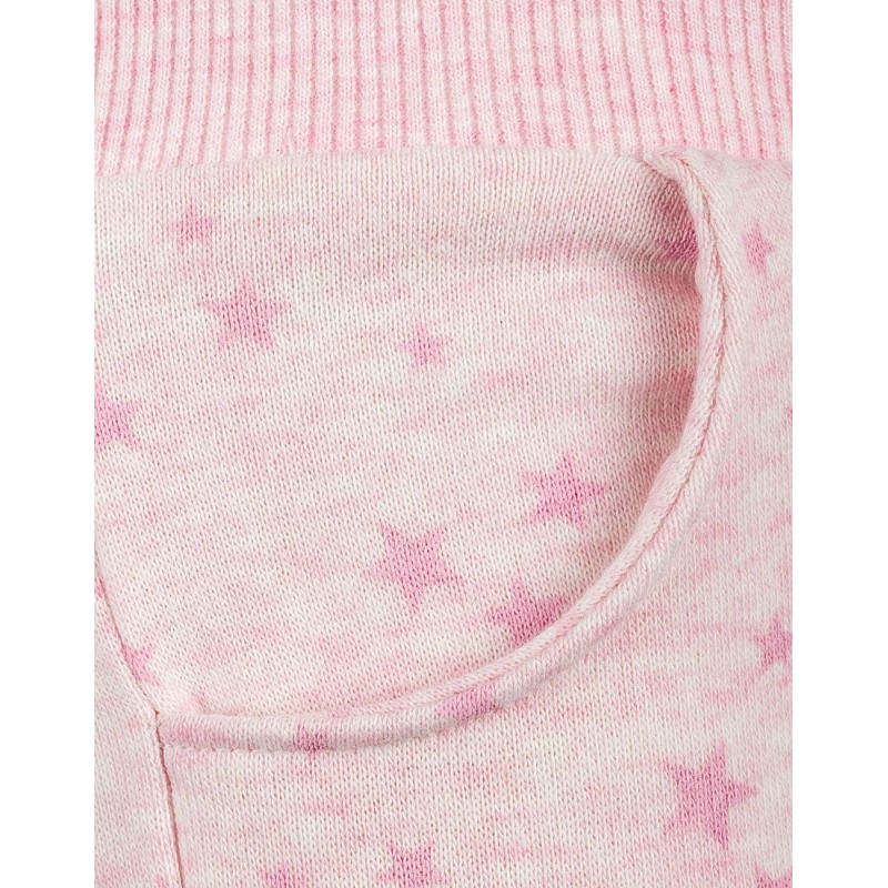 Свежо светлорозово долнище за момиче със слим силует, изпъстрено с по-тъмни звездички. Долнището има две джобчета и връзки на талията. Лека вата.