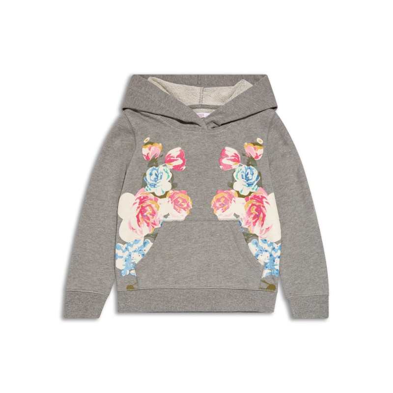 Практичен момичешки суичер с качулка и щампа на цветя. Удобна и топла връхна дреха, изработена от мека, плътна материя.