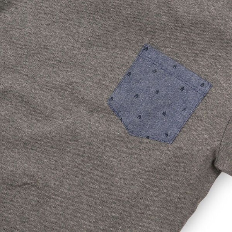 Стилна семпла блуза с къс ръкав за момчета от лятната колекция на Minoti. Блузката е от качествена памучна материя, сива, с кокетно синьо джобче, малко по-дълга отзад.